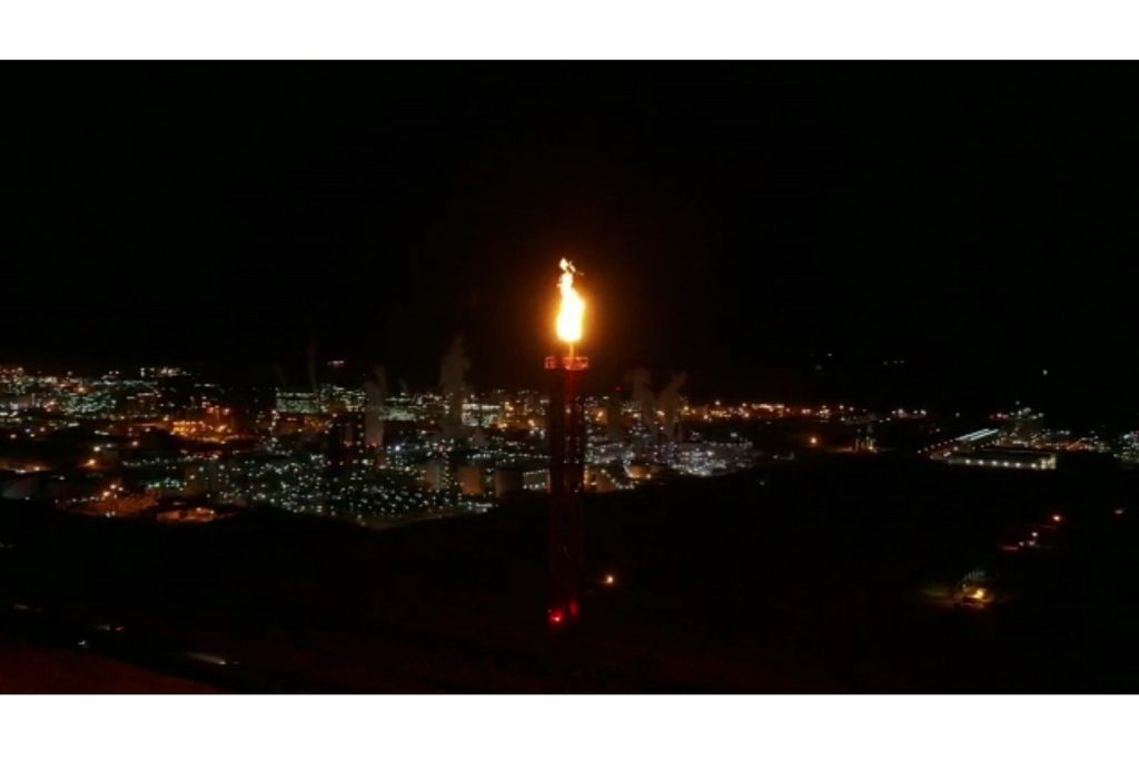یک روز با رفع مشکلات مکانیکی، این تیم توانستند باتزریق گاز، آتش فلر را روشن کنند.